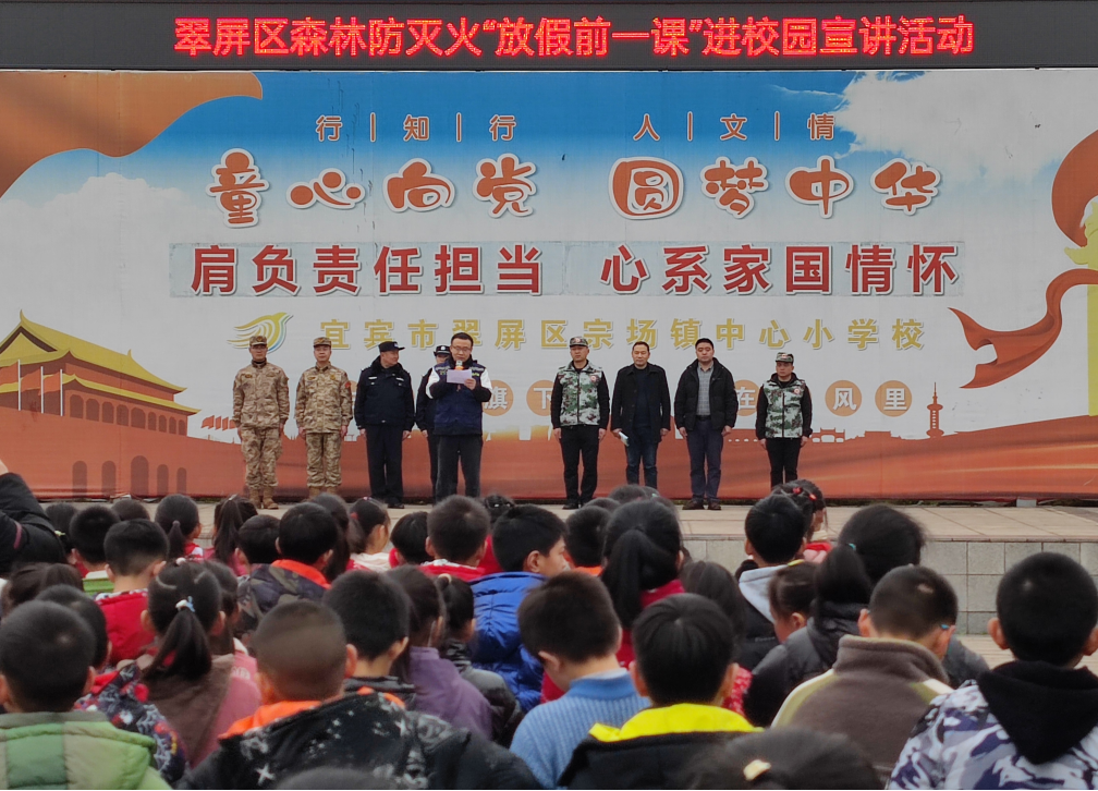 四川新闻网消息 近日,翠屏区森防指办、区公安分局森林警察大队、宗场镇人民政府、宗场老兵志愿服务队等在宗场镇中心校开展安全知识“放假前一课”进校园宣讲活动,为全校师生上了一堂别开生面的安全课。