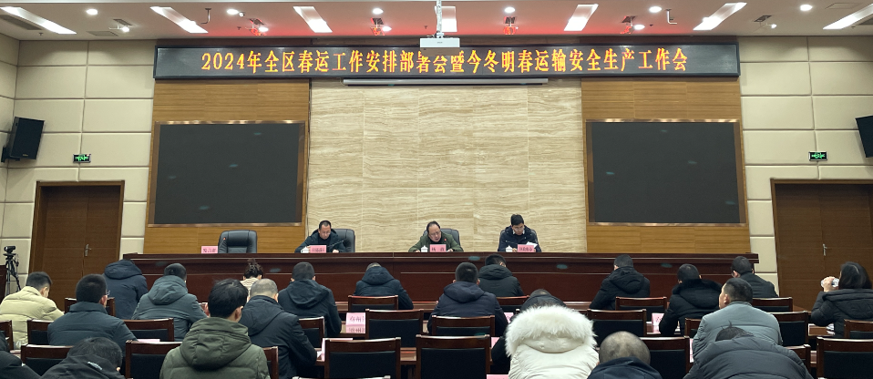 会上区交通运输局党组书记、局长方祖平通报近期安全生产事故,传达了省、市2024年春运工作会议精神和安排部署2024年春运各项工作,要求各乡镇(街道)、区级相关部门、运输企业要按照“平安春运,便捷春运,温馨春运”的总体目标,成立春运工作领导机构,严格执行 24小时值班值守和领导带班制度,强化协调配合,建立健全春运工作协调机制,做好信息共享、措施联动、预案对接。