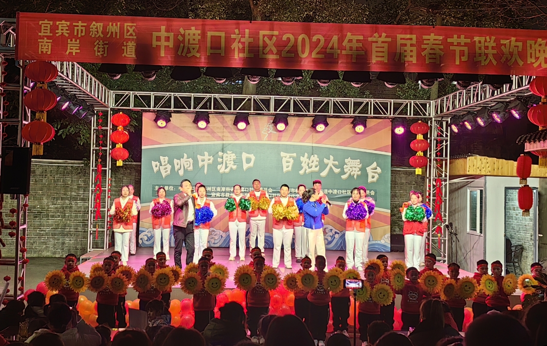 值得一提的是,晚会压轴节目是由中渡口社区全体工作人员带来的《幸福宜宾》。这支节目曾在全市首届长江社区文化节上汇报演出,以其富有感染力的故事和深情的演绎,为晚会画上了完美的句号。