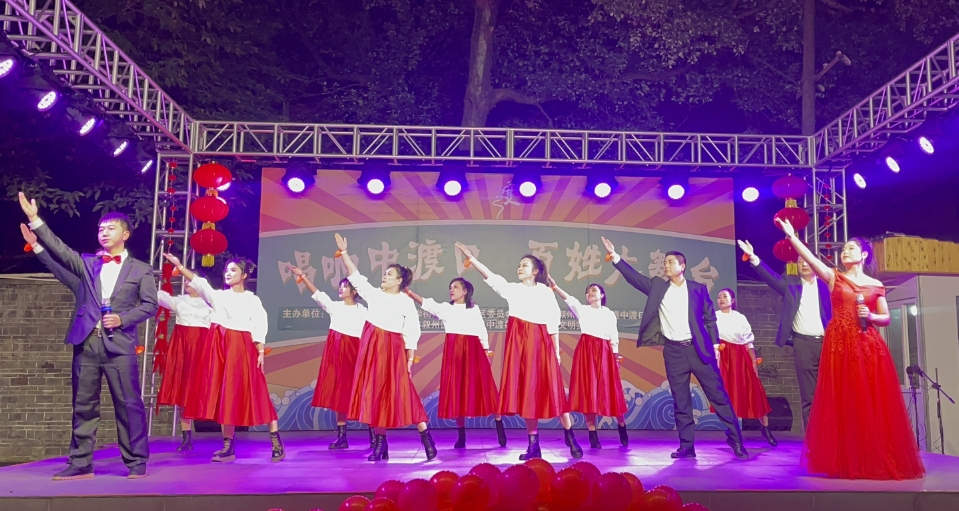 中渡口社区的“民星”带来了多个节目,中渡口健身球队的健身球舞《广场Style》、晚霞映辉艺术团的舞蹈《桃花渡》、舞尽浮华舞蹈队的舞蹈《人间烟火》、馨悦舞蹈队的舞蹈《九州同》、春苗艺术团的大合唱《游击队之歌》《军民大生产》等精彩节目。