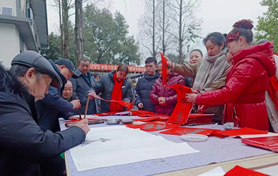 四川新闻网消息(周瑜原 通讯员张驰、钟晓梅)1月31日晚,宜宾市叙州区南岸街道中渡口社区党群服务中心举行了一场精彩纷呈的春节联欢晚会。本次晚会旨在庆祝春节,丰富社区群众的文化生活,增进各单位之间的交流与联系,营造一个欢乐、和谐的节日氛围。现场气氛热烈,观众热情高涨,除了精彩的节目表演,还有书法家现场写春联,为居民送上新春祝福。