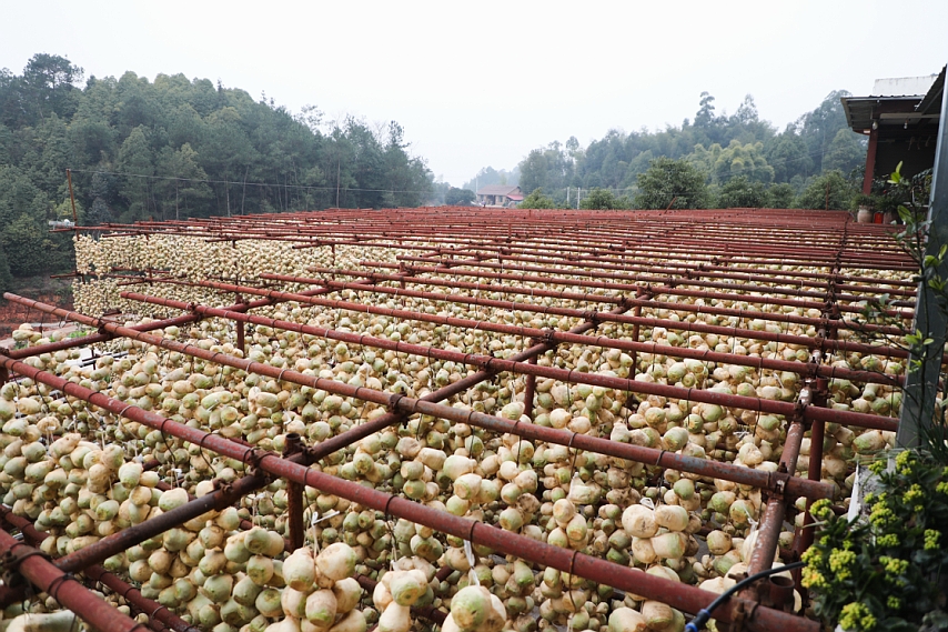 四川新闻网消息(周瑜原 通讯员李清凌)眼下正是大头菜收获的季节,也是翠屏区思坡镇常庆村腌制大头菜生产企业最忙碌的时候。连日来,村民正忙着把大头菜串成串儿,一串一串挂在晾晒架上。经过一系列加工,这些大头菜将由“初级形态”进化为深受云贵川人民喜爱的“下饭神器”。