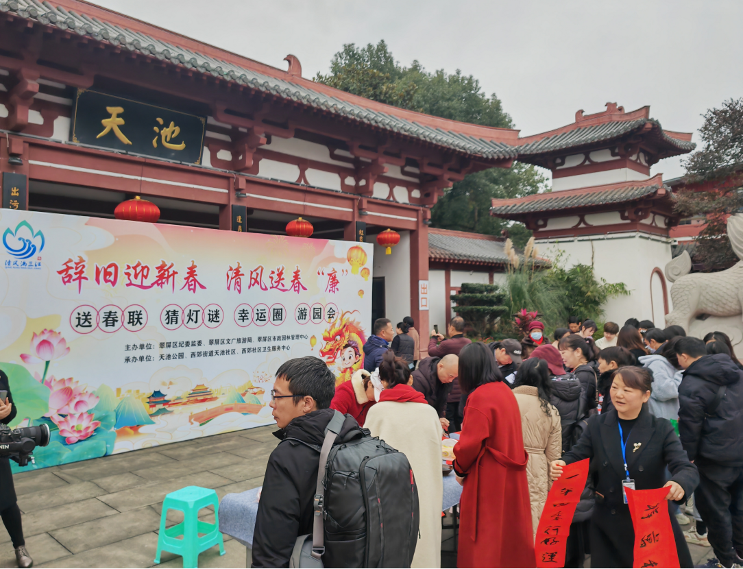 四川新闻网消息 近日,翠屏区西郊街道天池社区携手辖区单位天池公园和西郊卫生服务中心在廉洁文化基地天池公园开展“辞旧迎新春 清风送春‘廉’”惠民主题文化活动。