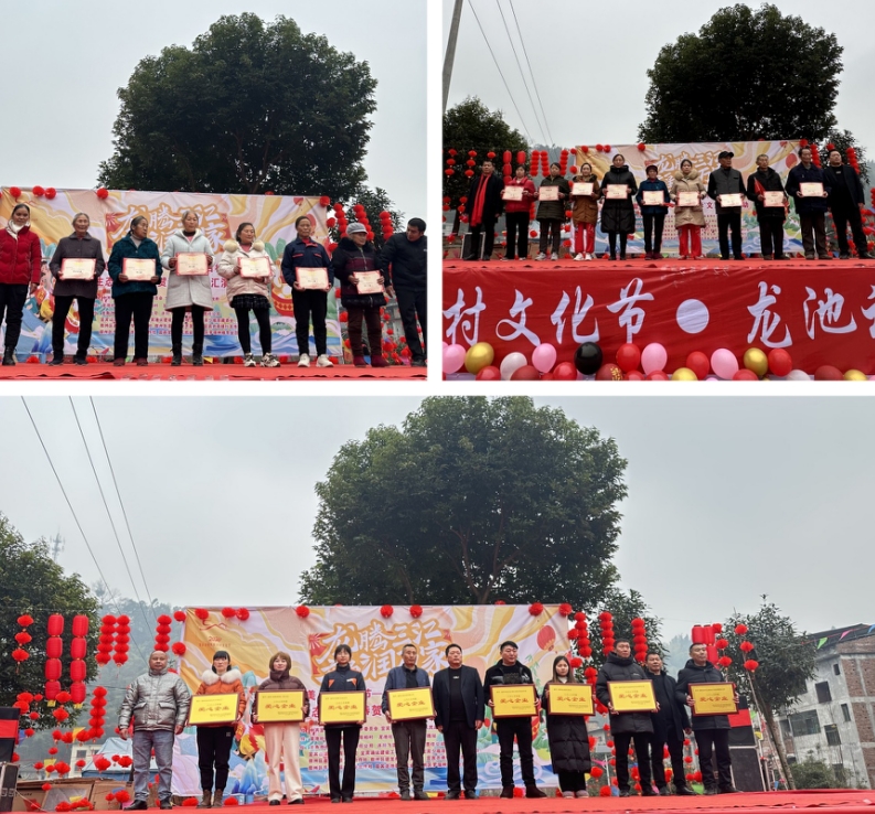 现场还为各村评选出的最美家庭、好公(婆)、好儿媳们颁发了荣誉证书,表彰了对活动大力支持、赞助乡村文化活动的爱心企业们。