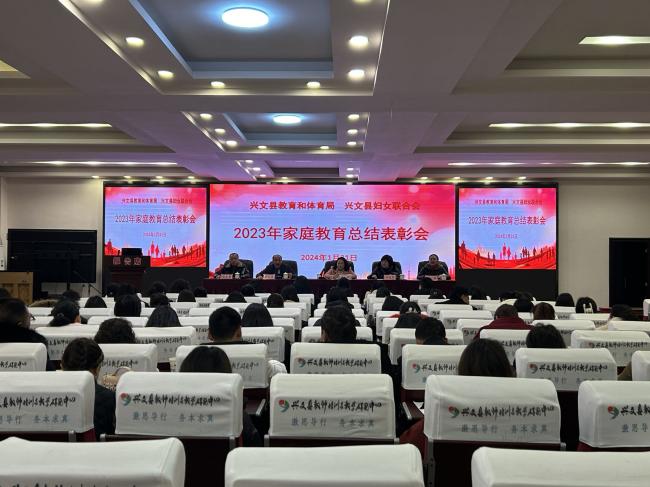 在2023年家庭教育总结表彰会上,兴文县师培中心家庭教育教研员、正高级教师王丽对2023年兴文县家庭教育工作做总结,总体来看过去一年兴文县家庭教育工作进展顺利,成效明显,呈现出良好的发展态势。刘旭莉宣读表彰文件,表扬了45名家庭教育优秀讲师,5个优秀集体,13个家庭教育优秀村社区;随后获奖讲师曾开明和优秀集体代表五星镇就家庭教育工作做经验交流。黄群对获奖个人和集体表示祝贺,对家庭教育讲师们表达了感谢,同时也对2024年家庭教育工作提出了要求,一是抓组织领导,完善由党委领导、政府主导、部门负责、社会协同的家校社共同育人机制;二是抓资源整合,加强阵地和队伍建设,发挥家长学校作用,壮大师资力量,织密家庭教育服务网;三是抓创新举措,以多形式、多样化的教育手段提升家庭教育工作实效。