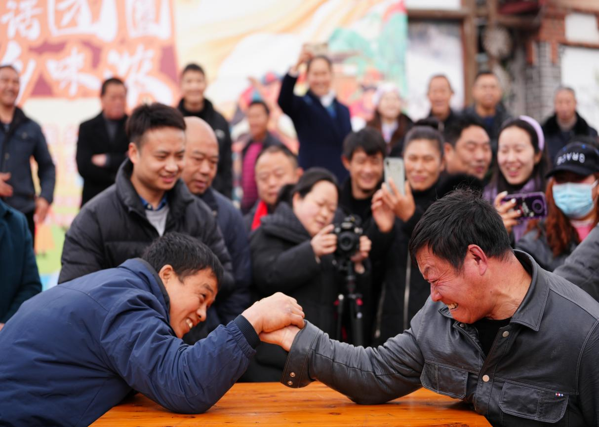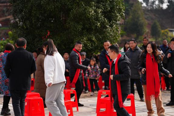 运动会共设有四个项目,采取现场组队参与活动的形式进行。趣味运动会分别设“抢板凳”“扳手腕”“滚铁环”“拔河比赛”四个项目,这些项目既考验个人的体能和技巧,又强调团队协作的重要性。比赛现场气氛热烈,欢声笑语不断,村民们在轻松愉快的氛围中尽享运动的乐趣。