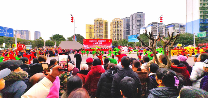 活动现场锣鼓喧天、人头攒动、欢声雷动,汇成一片欢乐的海洋。气势威猛的雄狮、手拿荷叶的娃娃、精彩绝伦的变脸、活灵活现的舞龙、欢快喜庆的划旱船……来自各镇的表演游行队伍拿出各自“绝活儿”,开展传统民俗文艺“大比武”,为当地群众带来了一场欢乐祥和的文化盛宴,送上了非常精彩、特有年味的春节祝福。