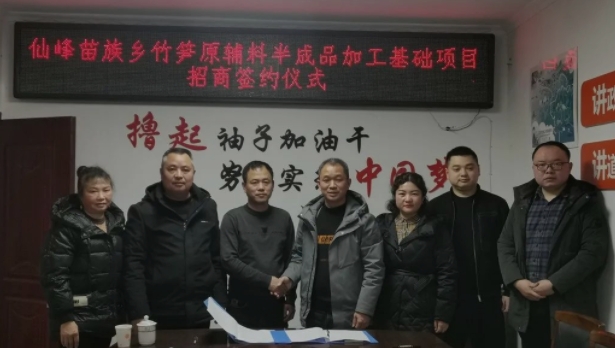 四川新闻网消息(周瑜原 通讯员黄丹)3月1日,仙峰苗族乡开展竹笋原辅料半成品加工基地项目签约仪式。仙峰苗族乡党委常务副书记魏小金,仙峰苗族乡党委副书记、乡长黄艳,长宁鑫佰汇食品公司、巴蜀野珍食品有限公司负责人王剑岭、王桥岭、余东海,仙峰苗族乡乡贤、方竹产业大户曾在琼参加签约仪式。