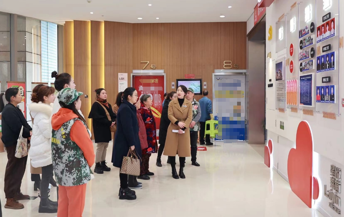 节目汇演前,南岸街道15名“最美家庭”“巾帼奋斗者”“好婆婆”“好儿媳”代表参观莱茵春天商圈党群服务中心。