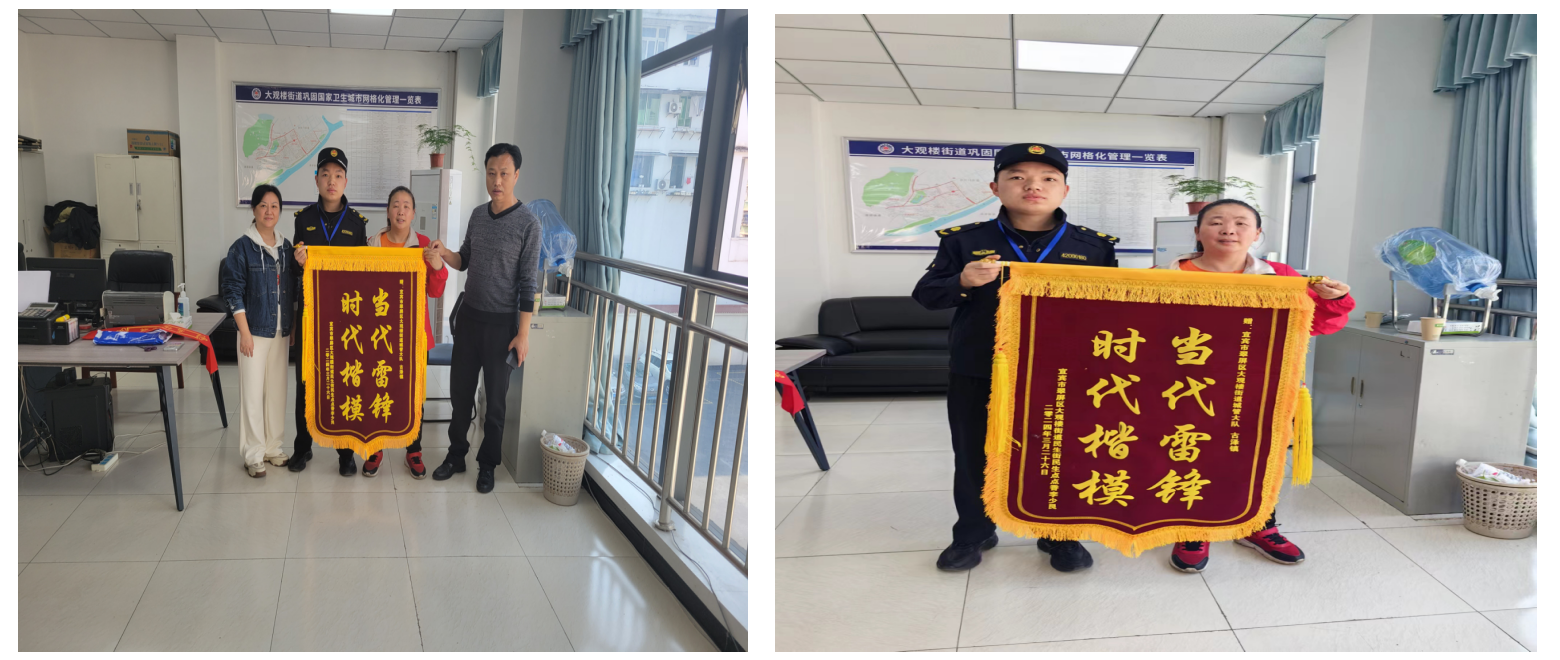 四川新闻网消息 3月26日上午,宜宾市翠屏区市民李女士将一面“当代雷锋 时代楷模”的锦旗送到翠屏区大观楼街道城管办,对大观楼街道城管大队队员古泽镇见义勇为乐于助人的行为表示深深地感谢。“在我无助的时刻,古兄弟挺身而出,这种大义不是用金钱能够衡量的,为大观楼街道城管大队点赞!”