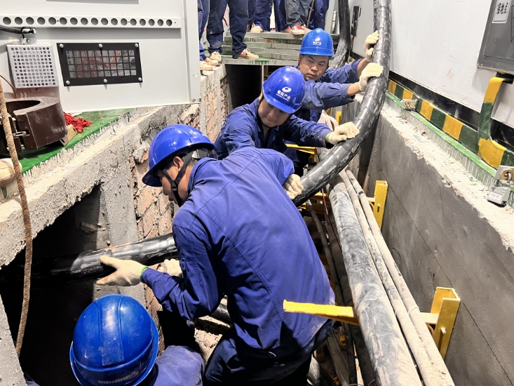 在电缆敷设作业现场,3名人员正在电缆井通道内,检查并清理电缆敷设沿途的杂物和障碍,另外2名人员正有条不紊地装设电缆放线架、绞磨、电缆滑轮等工具,待一切准备工作就绪后,地面施工人员和通道内施工人员相互配合将电缆慢慢送入地下管道。经过6个小时的连续作业,施工人员先后完成了电缆敷设、电缆头制作、电缆搭接、调试等工作,中午12时20分,10千伏永滨线成功送电投运。