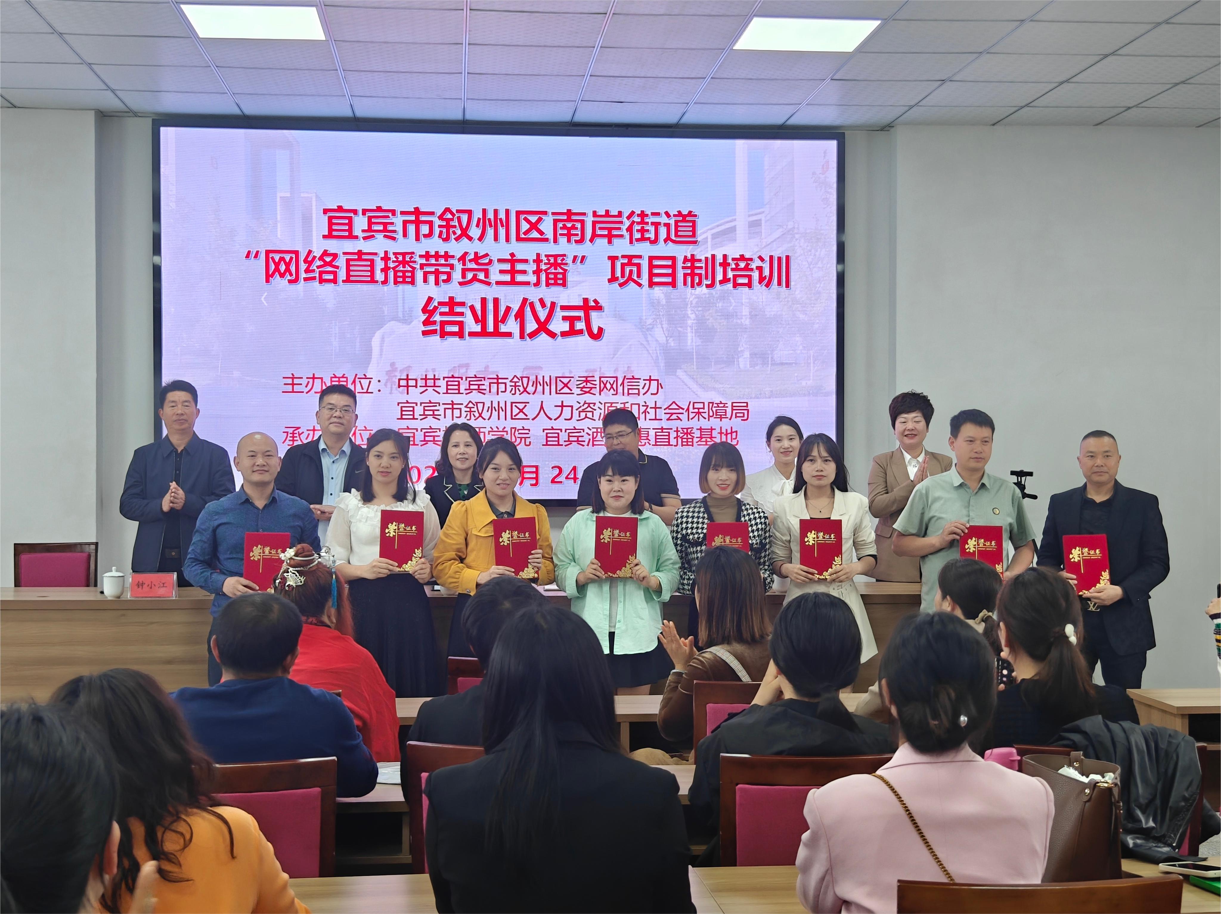 叙州区委宣传部(区委网信办)、叙州区农业农村局(区委农办)、区供销社、区文旅局、金旅集团、南岸街道有关领导和负责人参加仪式,并现场为培训班结业学员和优秀学员颁发了荣誉证书。