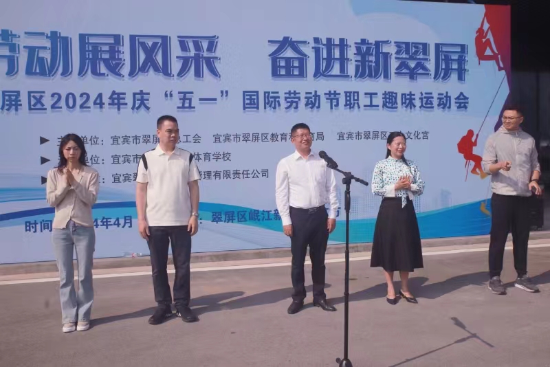 四川新闻网消息 为热烈庆祝“五一”国际劳动节,推进翠屏区干部职工积极参与全民健身活动,提高全区干部职工身体素质,充分展现翠屏干部职工良好的精神风貌, 4月26日,翠屏区总工会、翠屏区教育和体育局在岷江新区XIN立方联合举办“劳动展风采 奋进新翠屏”翠屏区2024年庆“五一”国际劳动节职工趣味运动会,全区共54支参赛队伍,1000余名职工参加活动。翠屏区委常委、区委办公室主任、区总工会主席邹建出席并宣布运动会开幕。