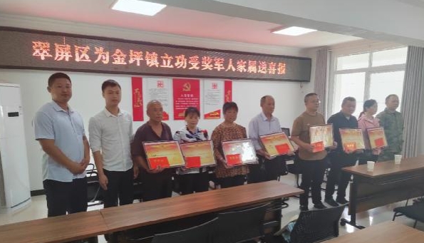 活动现场,翠屏区退役军人事务局和金坪镇退役军人事务站将立功喜报和慰问金送到受奖军人家属手中,并与家属进行亲切交谈,关心了解近期工作和生活状况,感谢他们对国防事业的支持与奉献,对立功受奖的退役、现役军人表示热烈祝贺。