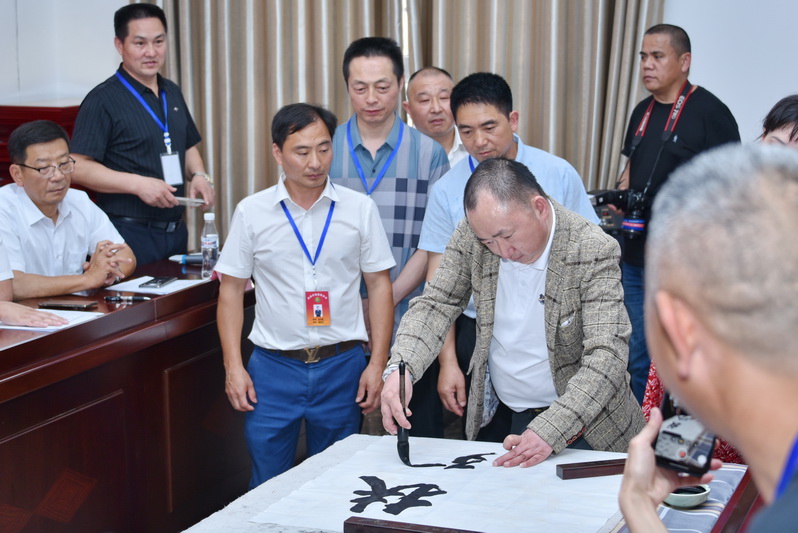 仪式上,残疾人代表进行了书法才艺展示,受助残疾人代表讲述自己的创业过程。