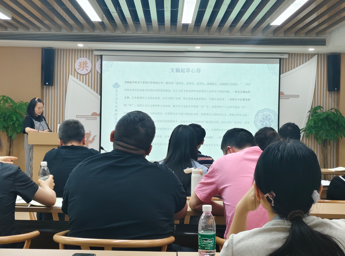 随后,围绕如何撰写好法院公文为主题,从公文的分类、基本格式、写作基本要求、签发与办理以及常用的几项公文五个方面作详细交流,并结合工作实务和写作心得体会,用大量生动典型的文稿事例,深度解析日常写作中存在且容易忽略的问题,并对提出的问题共同探讨具体的建议。