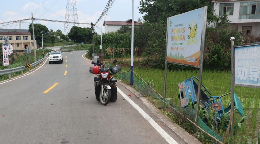 四川新闻网消息(周瑜原)近日,税某坤驾驶电动三轮车行驶至宜宾市南溪区合众村8组路口处左转弯时,与蒋某海驾驶的川Q2S***号普通二轮摩托车(搭乘杨某珍)相撞,造成税某坤、杨某珍受伤及两车损坏的交通事故。