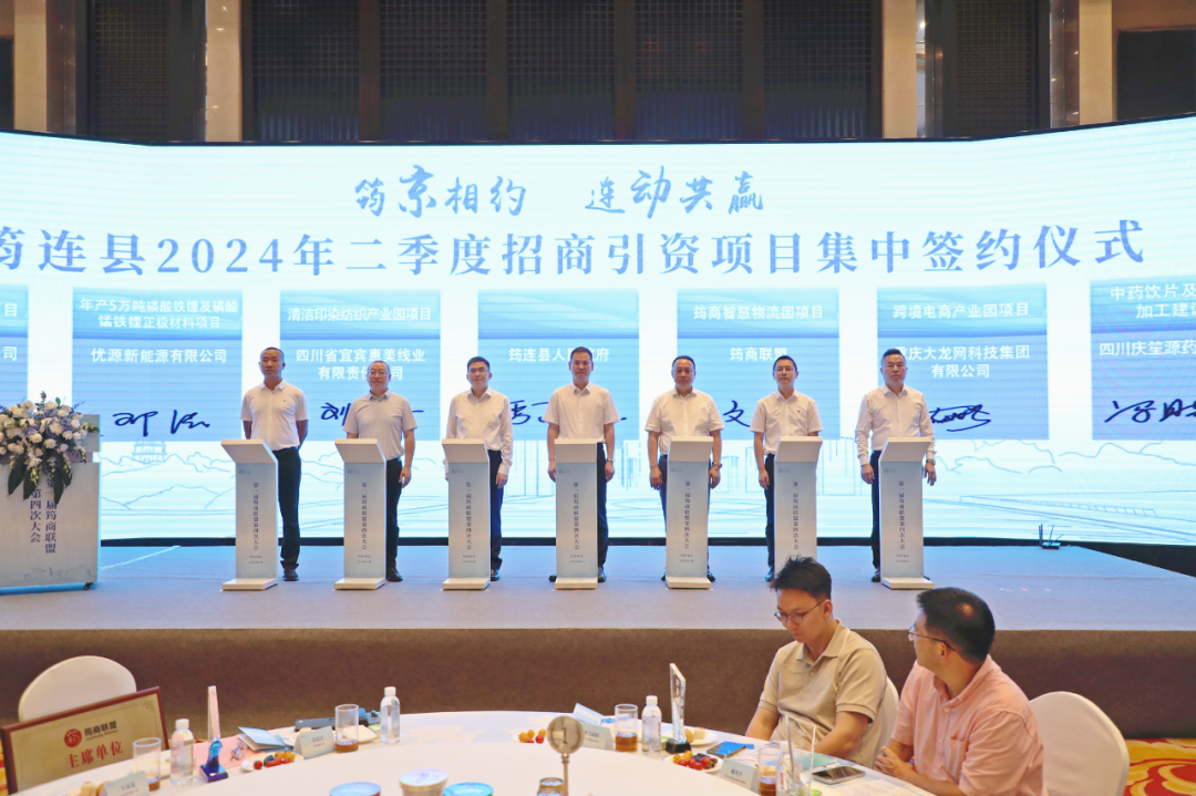 会上,进行了筠连县2024年第二季度招商引资集中签约仪式,筠连县相关负责人介绍了筠连县经济社会发展情况并进行了招商引资推介,现场发布民间投资机会清单,随后进行了6个投资项目的集中签约。