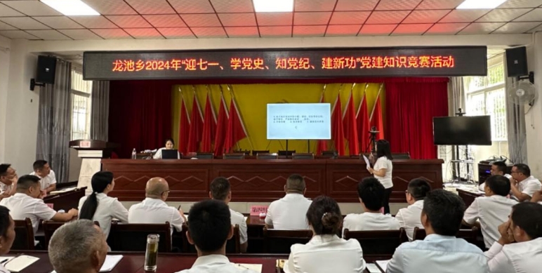 四川新闻网消息 7月1日,龙池乡组织开展“迎七一、学党史、知党纪、建新功”党建知识竞赛活动,乡机关党支部全体党员、各党(总)支部书记、副书记40余人参加活动。
