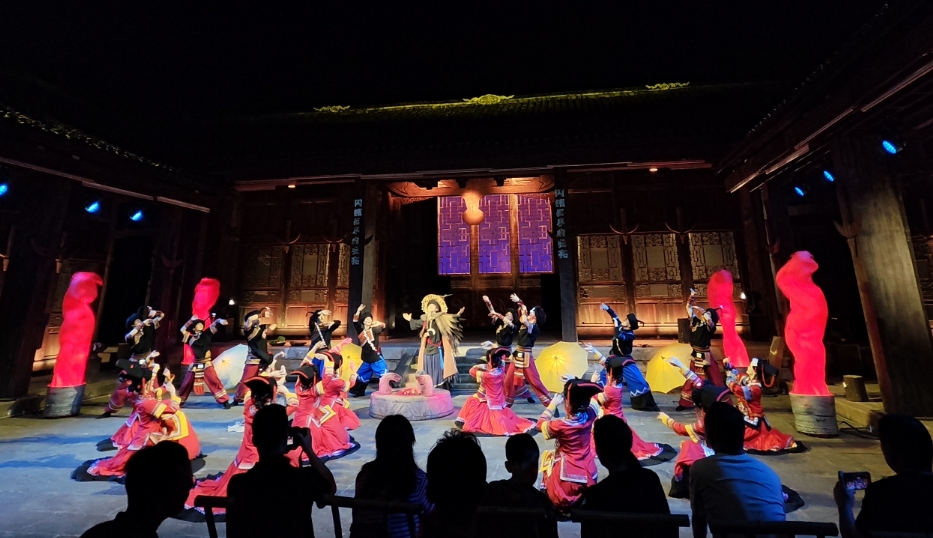 夜幕低垂,别苑对面的“丹桂湾”四合院化身舞台背景,一场名为《彝人千年·盛世彝歌》的沉浸式主题演艺节目,让古城之夜“燃起来”,让游客的脚步“停下来”,也让景区业态“融起来”。