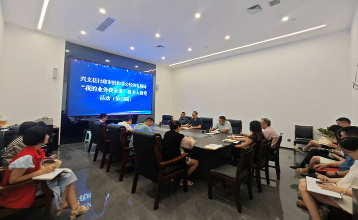 四川新闻网消息 近日,兴文县行政审批和非公经济发展局开展了“我的业务我来讲”第四期机关大讲堂活动。本次活动的主讲由局机关党委书记王志飞主讲,全体干部职工参加活动。