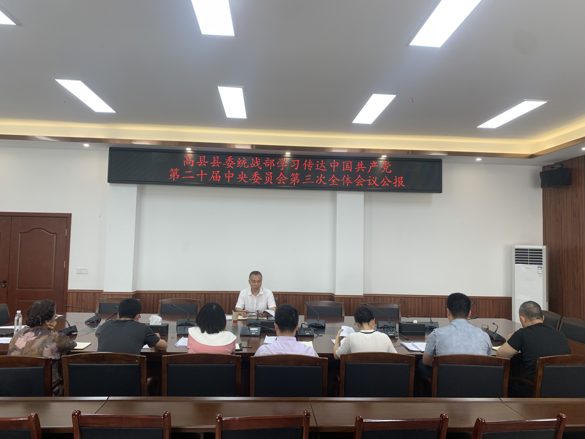 四川新闻网消息 近日,高县县委统战部召开职工会,深入学习贯彻党的二十届三中全会精神和县委常委会(扩大)会议精神,研究部署统战部门贯彻落实措施。