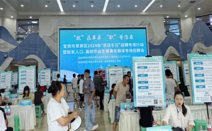 四川新闻网消息 为满足各类群体多元求职需要,特别是切实做好促进脱贫人口等青年群体就业工作,近日,由翠屏区就业创业促进中心主办的“就在翠屏 职等你来”2024年百日千万招聘专项行动招聘会在翠屏区政务服务中心一楼成功举办。