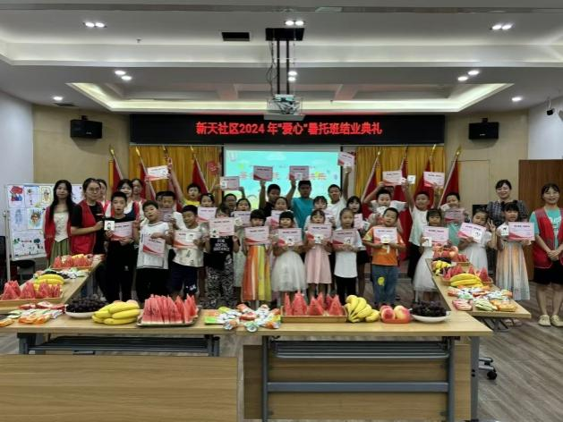 四川新闻网消息 为缓解双职工家庭暑期“看孩难”的压力,新天社区举办了“爱心”暑托班。从7月开班至今,新天社区两期“爱心”暑托班的小朋友在社区工作人员和志愿者老师的照护下,在社区度过了一个快乐、安全、充实的暑假。近日,“爱心”暑托班的小朋友们正式结业。