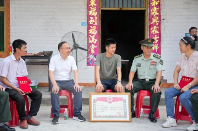 当天上午,送喜报队伍在父老乡亲的簇拥下来到了李刚的家门前。出席活动的宜宾军分区、叙州区委领导为李刚家庭送交喜报和奖励金,并向李刚及家属表示祝贺。