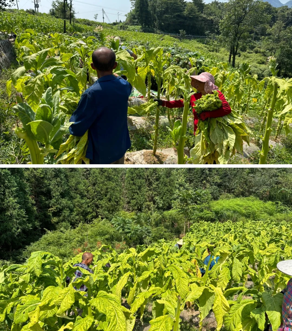 郁郁葱葱的烤烟田里,一株株烤烟枝繁叶茂、挺拔舒展,随着微风荡起层层绿浪。当前,正是烤烟采收、烘烤的黄金时节,烟农们抢抓时节在田间地头采摘烟叶。