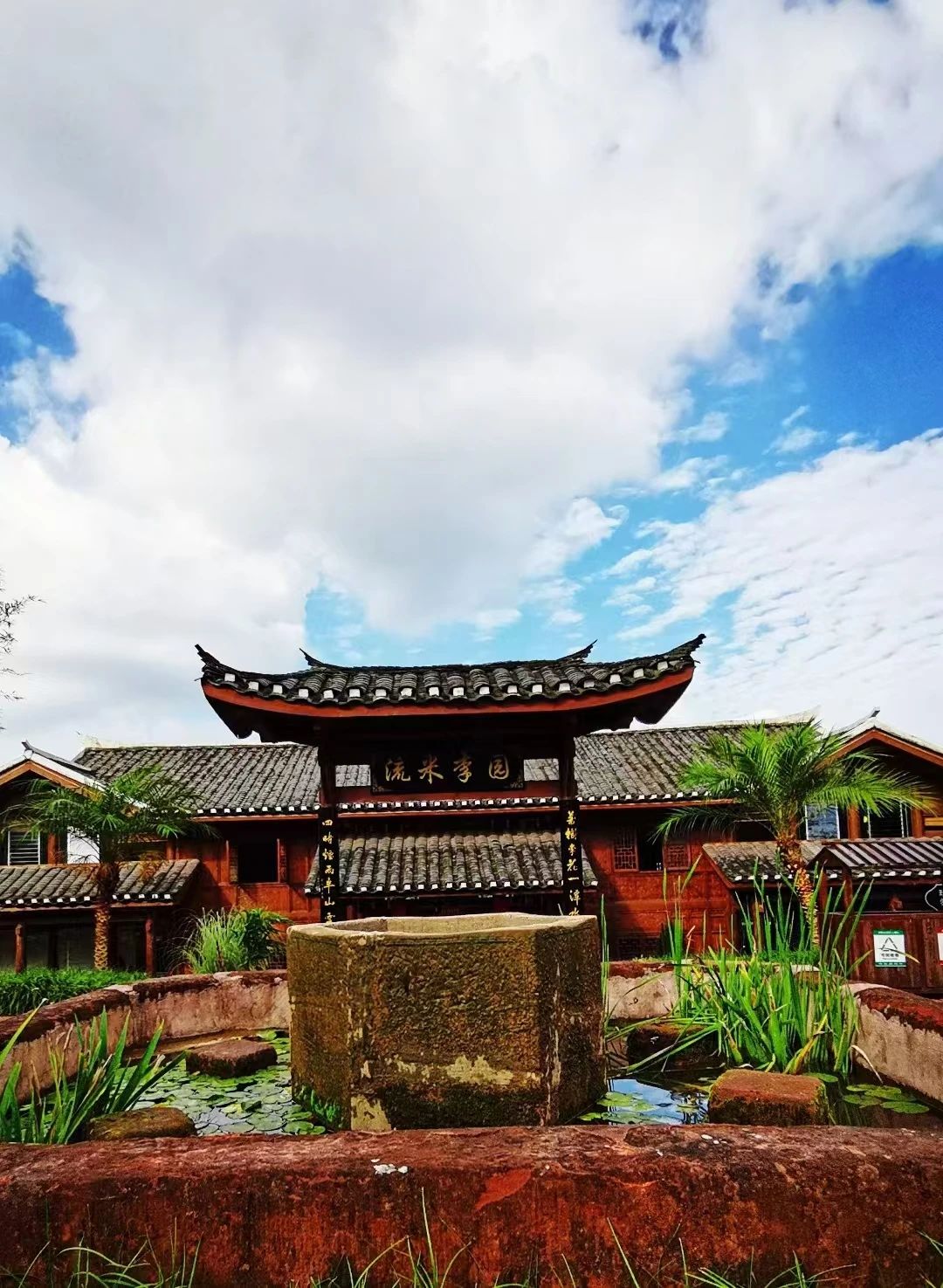 因是川南民居,门前也必定少不了老物件,一个瓦罐,一座石磨,一方水缸,皆能因地就势成为一景,时节一到,心境便到:一念心清净,睡莲心莲处处开。