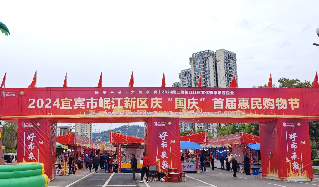 为庆祝中华人民共和国成立75周年,10月1日,2024第二届长江社区文化节集市游园会暨2024宜宾市岷江新区庆“国庆”首届惠民购物节启动。据悉,此次惠民购物节从10月1日起将持续到10月15日,打造儿童娱乐区、美食品鉴、互动游戏等场景,为市民游客打造吃、喝、玩、乐一站式体验。