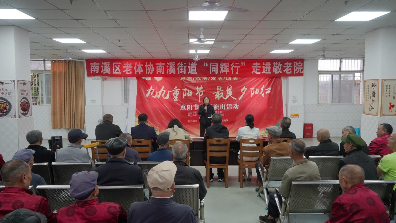 九九重阳节,浓浓敬老情。重阳节来临之际,为进一步倡导尊老爱老、敬老助老的社会风气,传承敬老、爱老、养老的传统美德,南溪街道老年人协会、老年人体育协会联合南溪区老年人体育协会、南溪街道新乡贤联谊会开展“同辉行”走进敬老院重阳慰问活动。南溪区老年人体育协会副主席肖青,南溪街道组织委员、政协工委副主任肖超参加慰问活动。