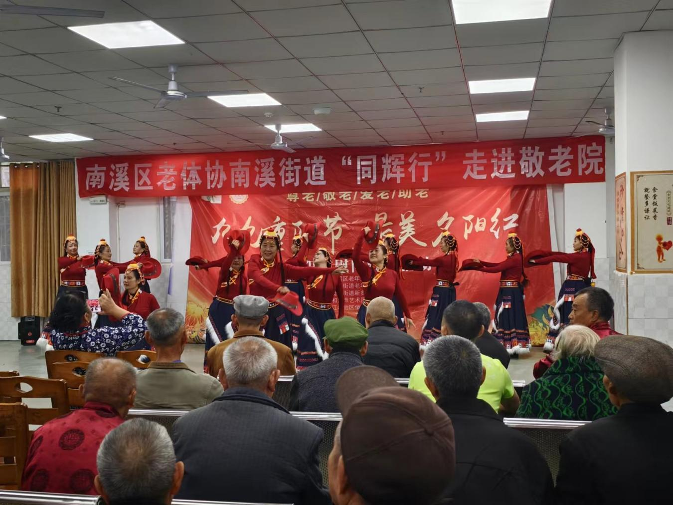 活动中,南溪区和之声艺术团、舞缘健身队、俏夕阳健身队带来了精彩纷呈的表演,藏族舞蹈《次仁拉索》、扇子舞《彩云追月》《美丽中国》等节目轮番上演,精彩的表演赢得了阵阵掌声,老人们脸上洋溢着幸福的笑容,深深感受到了社会的关爱和温暖,现场热闹非凡,欢声笑语不断。