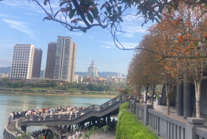 金秋十月,秋意浓。今年,由于四川高温天气的“超长待机,桂花的香气也随之迟到了。就在大家认为,今年桂花或许不会再开时,翠屏街头悄然传出了熟悉的芬芳,碧绿的枝叶映衬着点点花瓣,秋季的诗意与美感不言而喻。