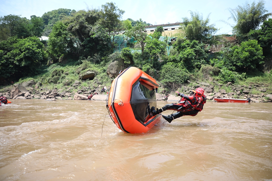 随后,水域救援专业队还通过以舟艇编队驾驶、快速救援技术、翻舟自救等科目进行演练。(供稿:宜宾消防 刘学艳)