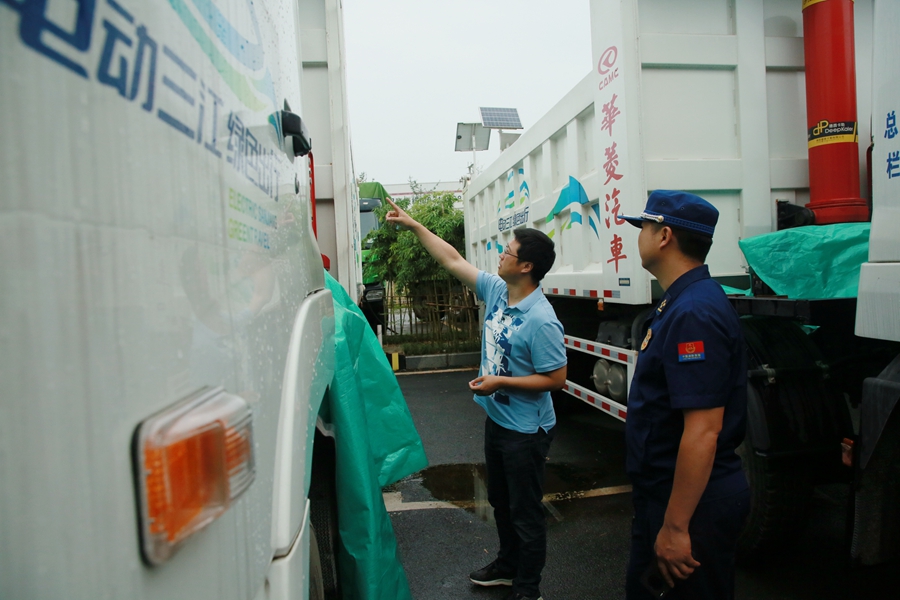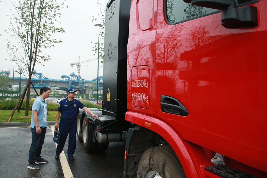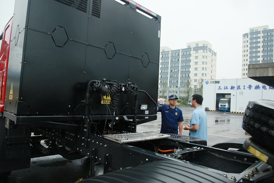 在调研过程中,工作组一行查看了换电站重卡充电、换电、车电分离,储电房及微型消防站建设情况;就重卡换电过程中电池包高压线束插接器频繁插拔、电池包频繁装卸及大功率充电、电池本身散热通风等消防安全风险提出了意见建议。