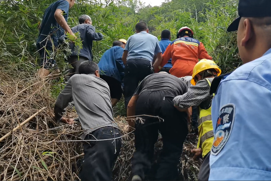 8时50分,被困驾驶员被成功转移出驾驶室,为了避免抬担架上坡期间滑倒,造成驾驶人二次伤害,救援人员将受伤驾驶员固定在担架上后,大家通力合作,有的抬着担架,有的在前面探路,并随时做好接替工作。