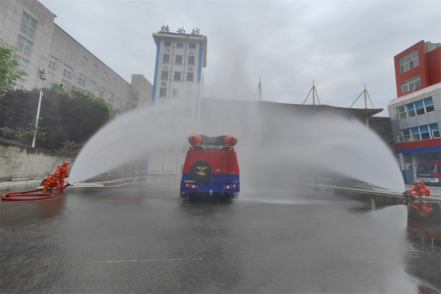演练模拟一CNG槽罐车发生泄漏并起火,宜宾支队航天路特勤站接警后赶往现场处置,为防止槽罐车发生爆炸、毒气蔓延等事故出现,救援人员在事故车两侧部署长干线移动水力自摆炮,对集束管组和操作箱表面强制冷却降温;演练现场,各号员迈着稳健的步伐,按规定做好安全防护的情况下,利用两门自摆炮同时作业,在短时间内达到控制火势、降低风险的良好效果;经过35分钟的紧急处置,本次演习圆满完成。