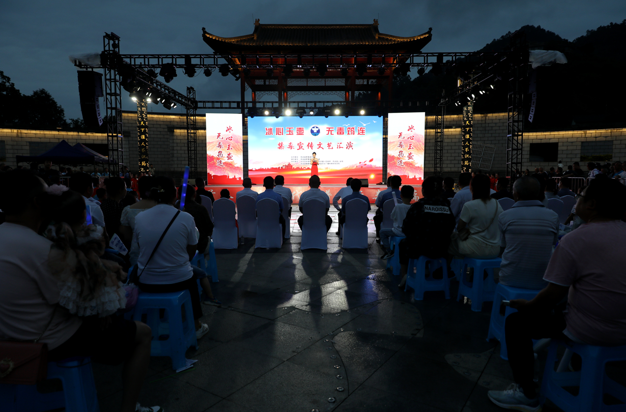 四川新闻网消息 6月24日晚,宜宾市筠连县禁毒委员会在玉壶广场举行“冰心玉壶、无毒筠连”为题的“6·26”国际禁毒日宣传活动暨文艺汇演。