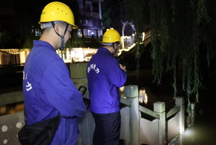受岷江上游持续强降雨影响,加之近期宜宾地区持续出现降雨天气,防汛保电形势严峻。根据水文中心发布信息,7月11日16时左右,本轮降雨洪峰将到达长江南溪段。从7月10日20点起至洪峰过境,南溪公司员工全力以赴,蹲守在裴石中坝、罗龙三块石、罗龙滨江路、城区古街护城河潜在隐患点适时监测水位上涨情况,确保及时做好防汛保电高效应对。