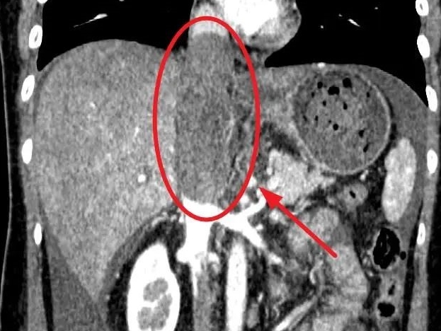 这种肿瘤极为罕见,且侵入了关键血管,此时直径已有9.2厘米,手术难度和风险极高,若要在上级医院手术治疗,需排队等待 4 个多月。