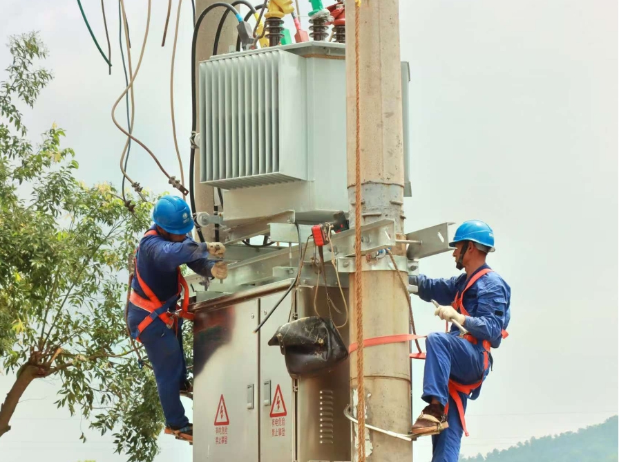 项目施工期间,该公司同步做好了电网升级和增容改造,组织精干队伍,倒排工期,分步推进,有序实施,及时开展配套施工、竣工验收和装表接电。当天,作业人员吊立16米方杆1基、架设10千伏线路、安装真空开1台、安装高压隔离刀闸1组、避雷器1组、互感器1台。骄阳当头,汗湿一身。