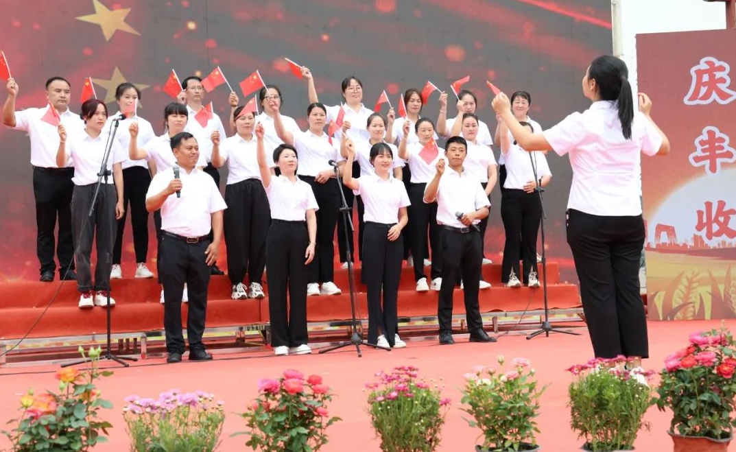 活动在欢快的文艺演出中拉开帷幕。舞蹈《踩金桥》《童绘丰收图》、歌曲《精忠报国》《中国人》《春天的故事》、朗诵《二十四节气歌》《走进新时代》《我和我的祖国》等一个个精彩节目依次登场,农民朋友与八方游客欢聚一堂,同赏精彩演出、共享丰收喜悦、漫话乡村振兴。