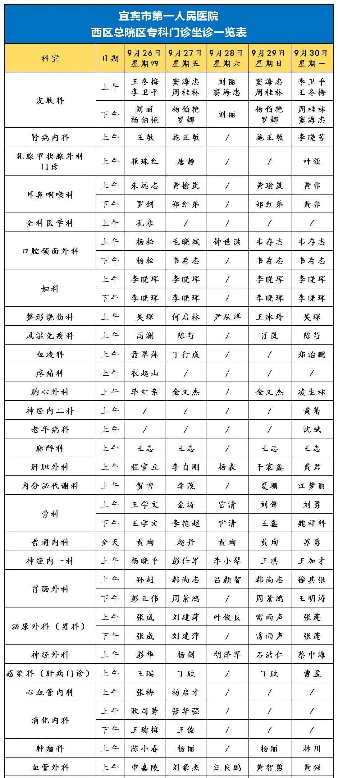 1.2024年9月26日上午7点起,宜宾市第一人民医院南区(沃尔玛旁)急诊科停诊,搬迁至西区总院区。
