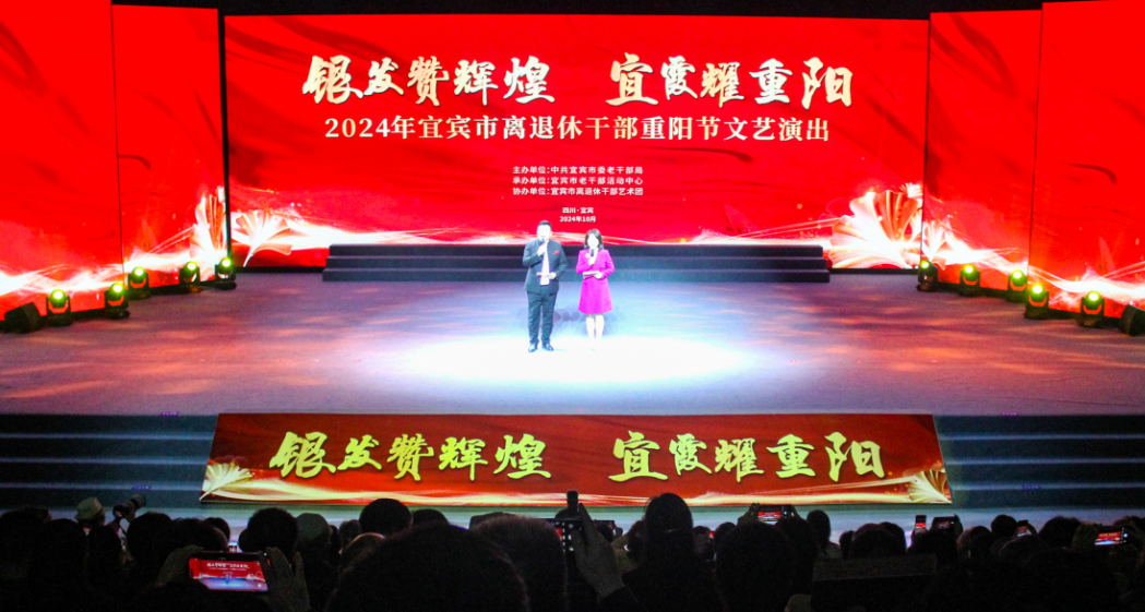 金秋送爽,丹桂飘香。宜宾市为大力弘扬敬老爱老的优良传统,进一步丰富离退休干部的精神文化生活,10月11日,“银发赞辉煌 宜霞耀重阳”2024年离退休干部重阳节文艺演出在宜宾市融媒体中心(传媒集团)演播大厅举行。此次活动由中共宜宾市委老干部局主办,宜宾市老干部活动中心承办,宜宾市离退休干部艺术团协办。