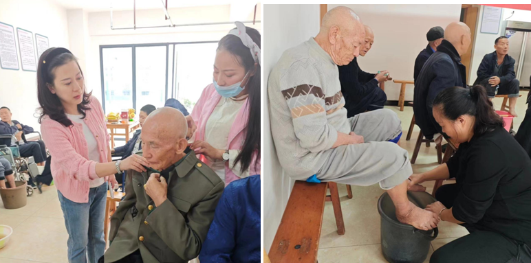 当天上午,工作人员和志愿者早早来到了养老服务中心,主动搀扶行动不便的老人参加活动,详细询问老人身体情况,并进行防诈骗知识宣传,向老人普及常见骗局和防范技巧,增强老人安全意识。邀请专业人员开展健康讲座,讲解养生知识,帮助老人更好关注自身健康,并为老人们提供足浴、按摩和艾灸等服务,帮助他们调理身体、驱寒除湿。