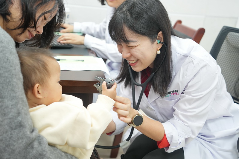 | 重医儿院儿童保健科专家为小朋友做检查(郑兴群 供图) |