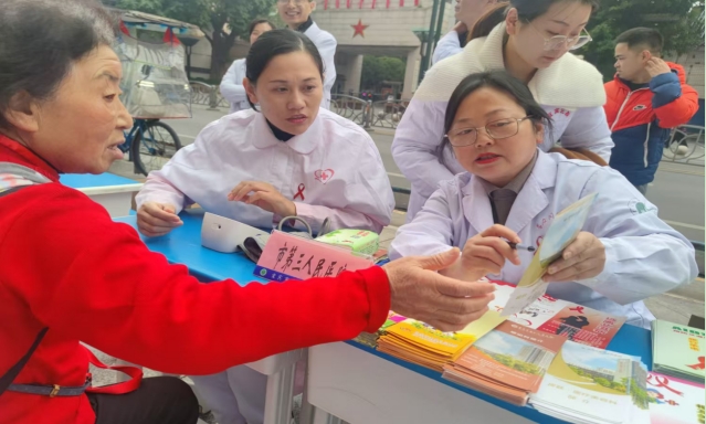 2024年12月1日是第37个世界艾滋病日。为了提高公众对艾滋病防治的认识,增强防艾意识,近日,宜宾市第三人民医院公共卫生科、感染科、艾防办医护人员在人民路开展世界艾滋病日健康义诊活动。宜宾市第三人民医院党委副书记、院长肖雪梅参加活动。