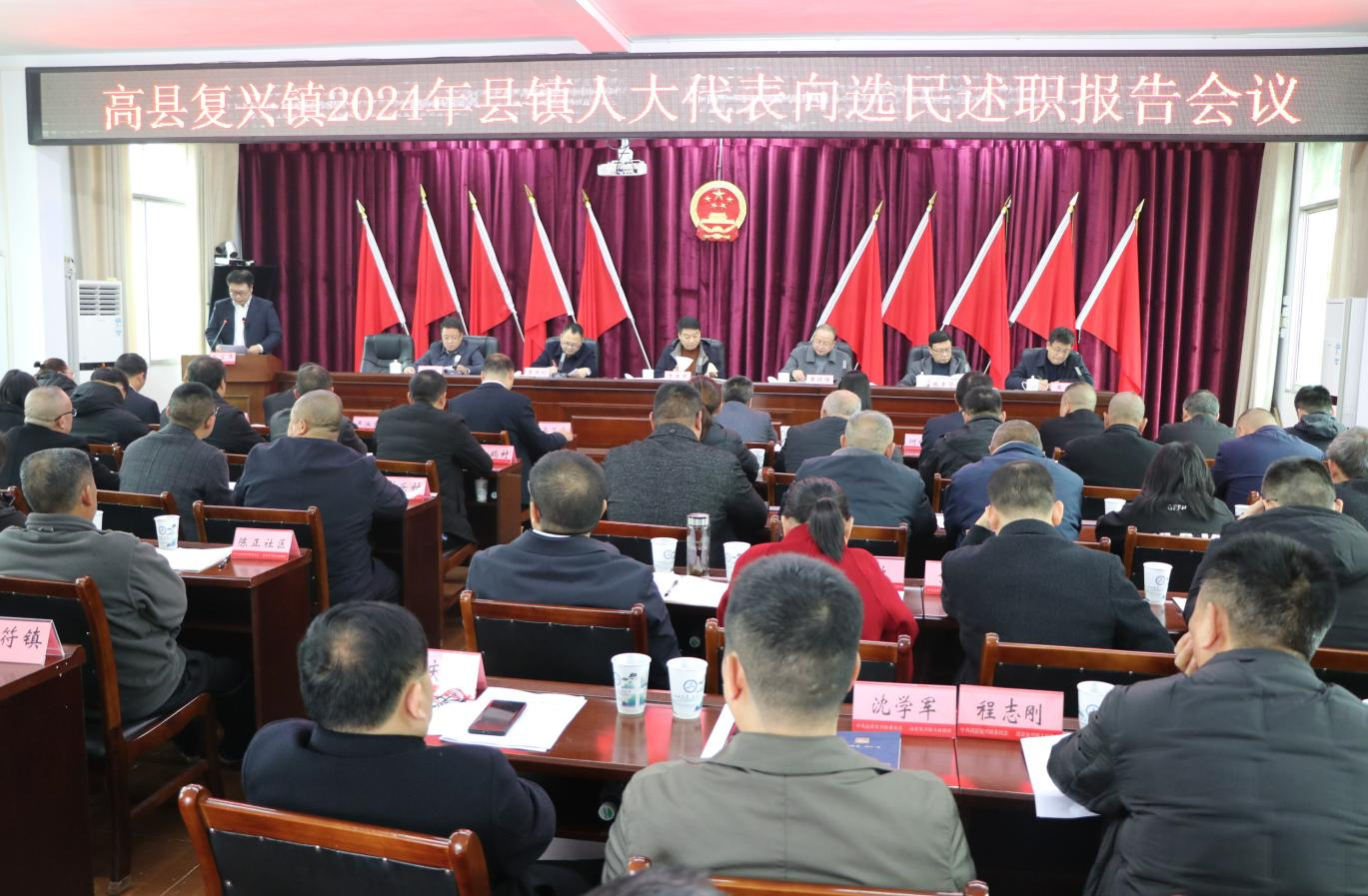 会议由复兴镇人大主席黄凯同志主持,参加会议的有7名县第十七届人大代表、部分镇人大代表以及选民代表等共计50余人。述职评议会议严格按照会议议程进行。